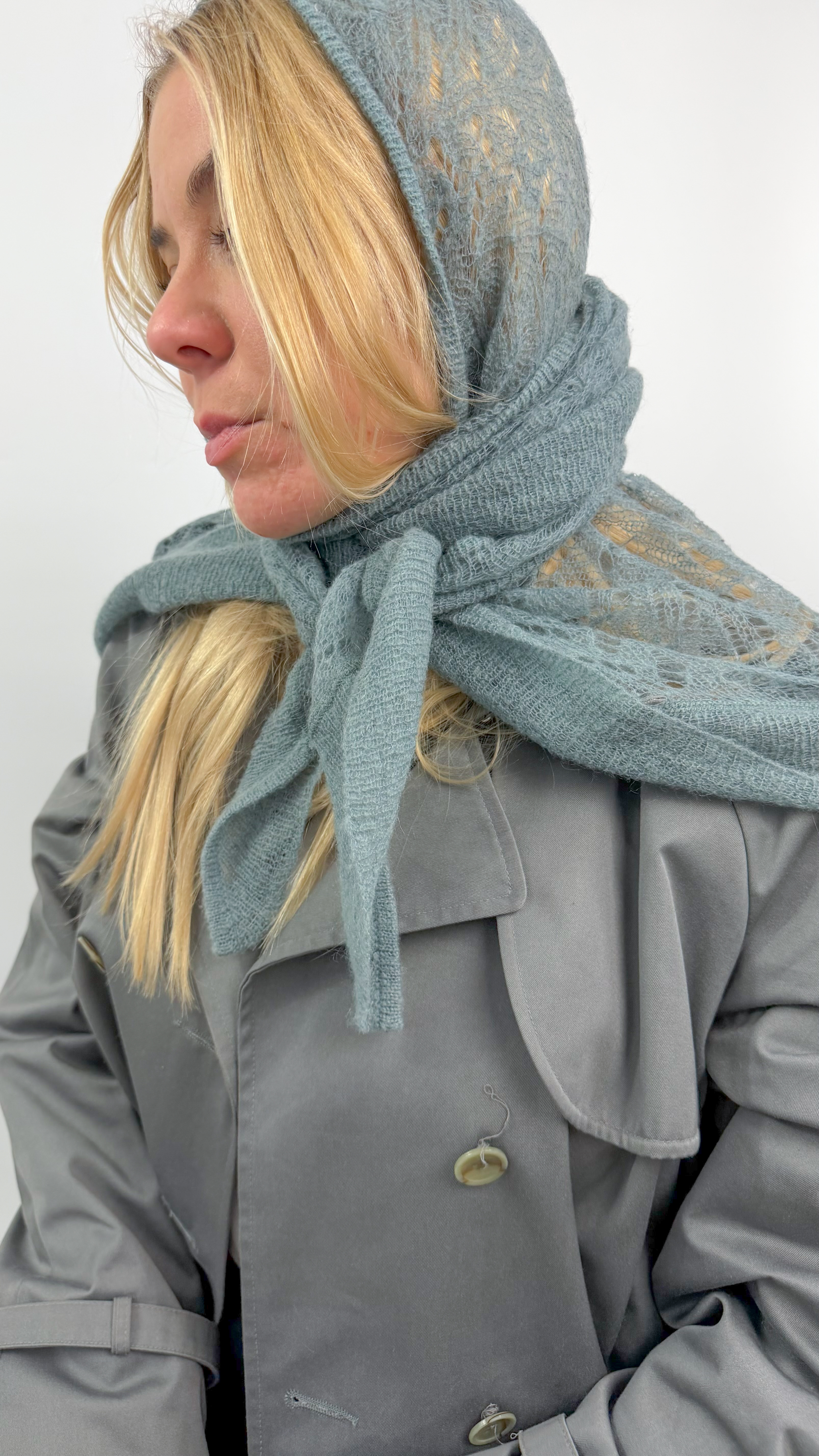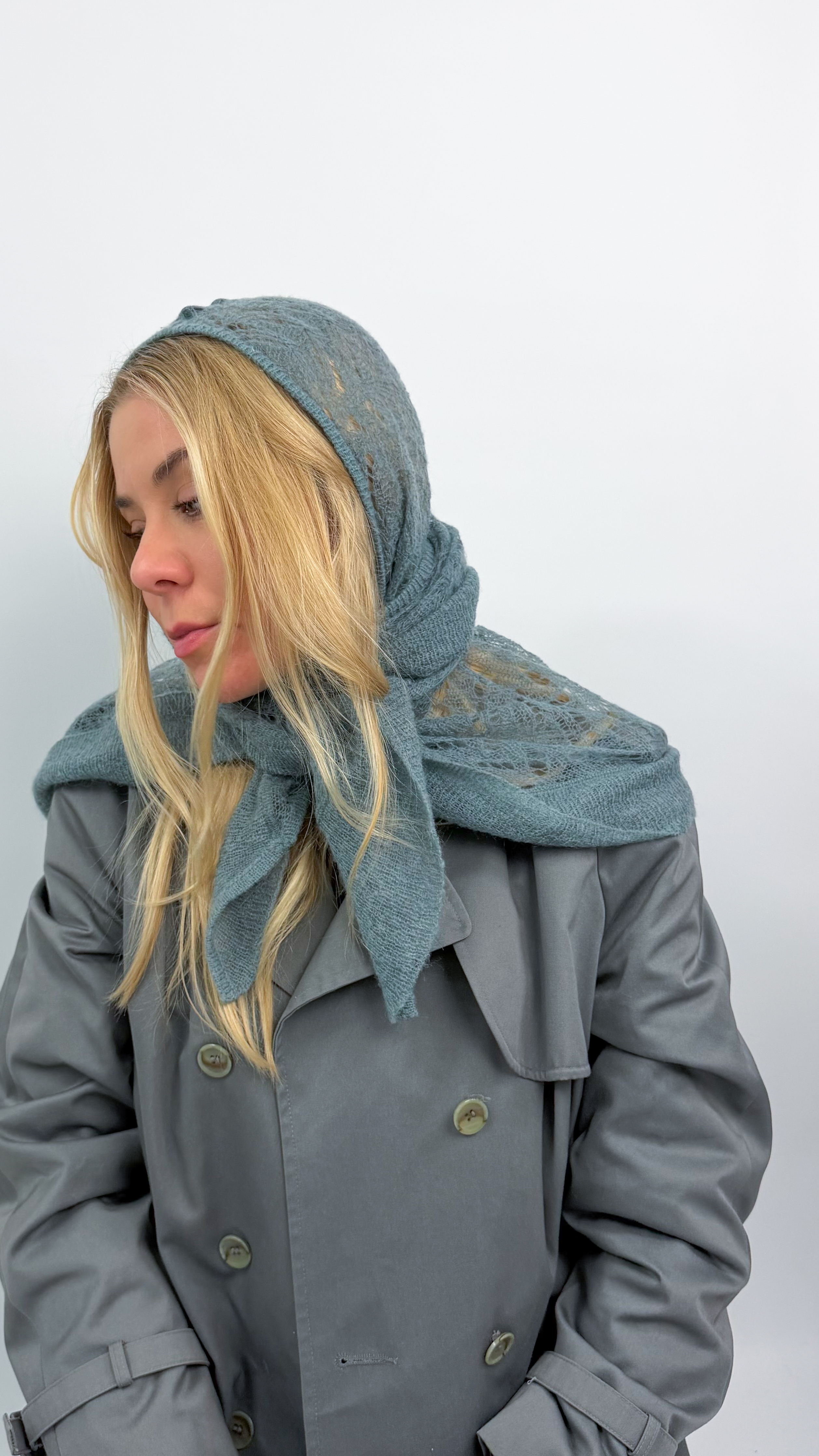 Chusta seledynowa ażurowa