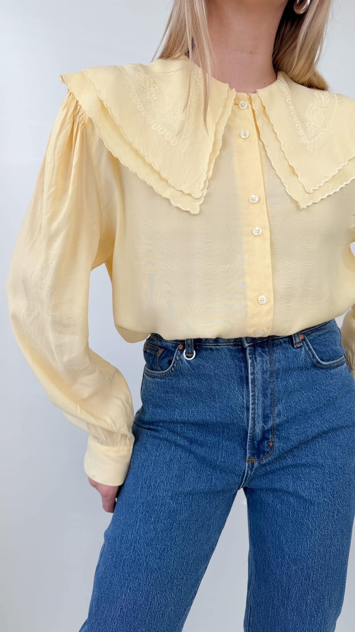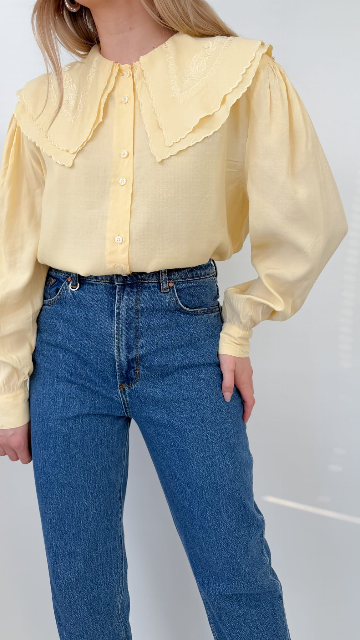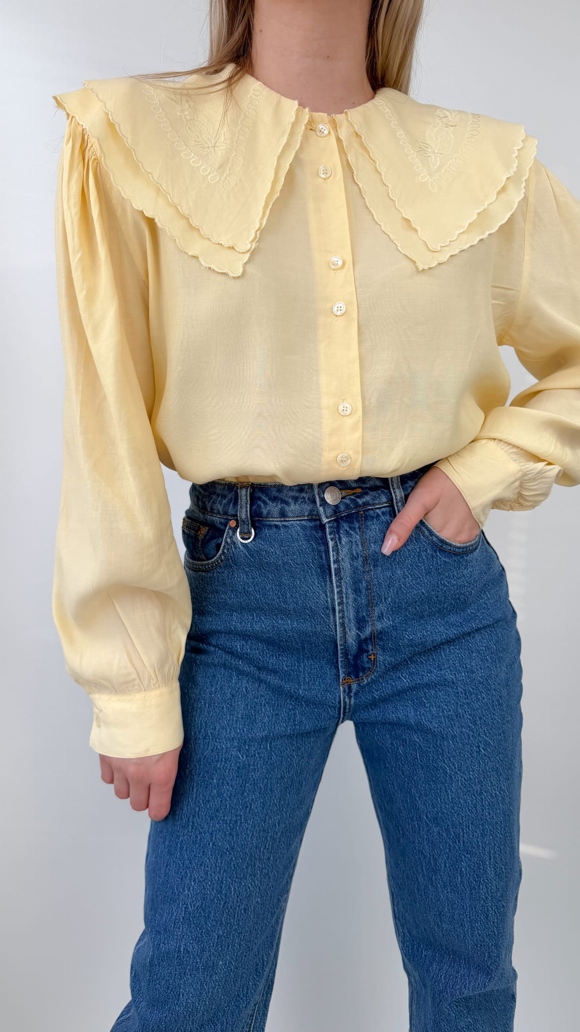 Koszula vintage z haftowanym kołnierzem