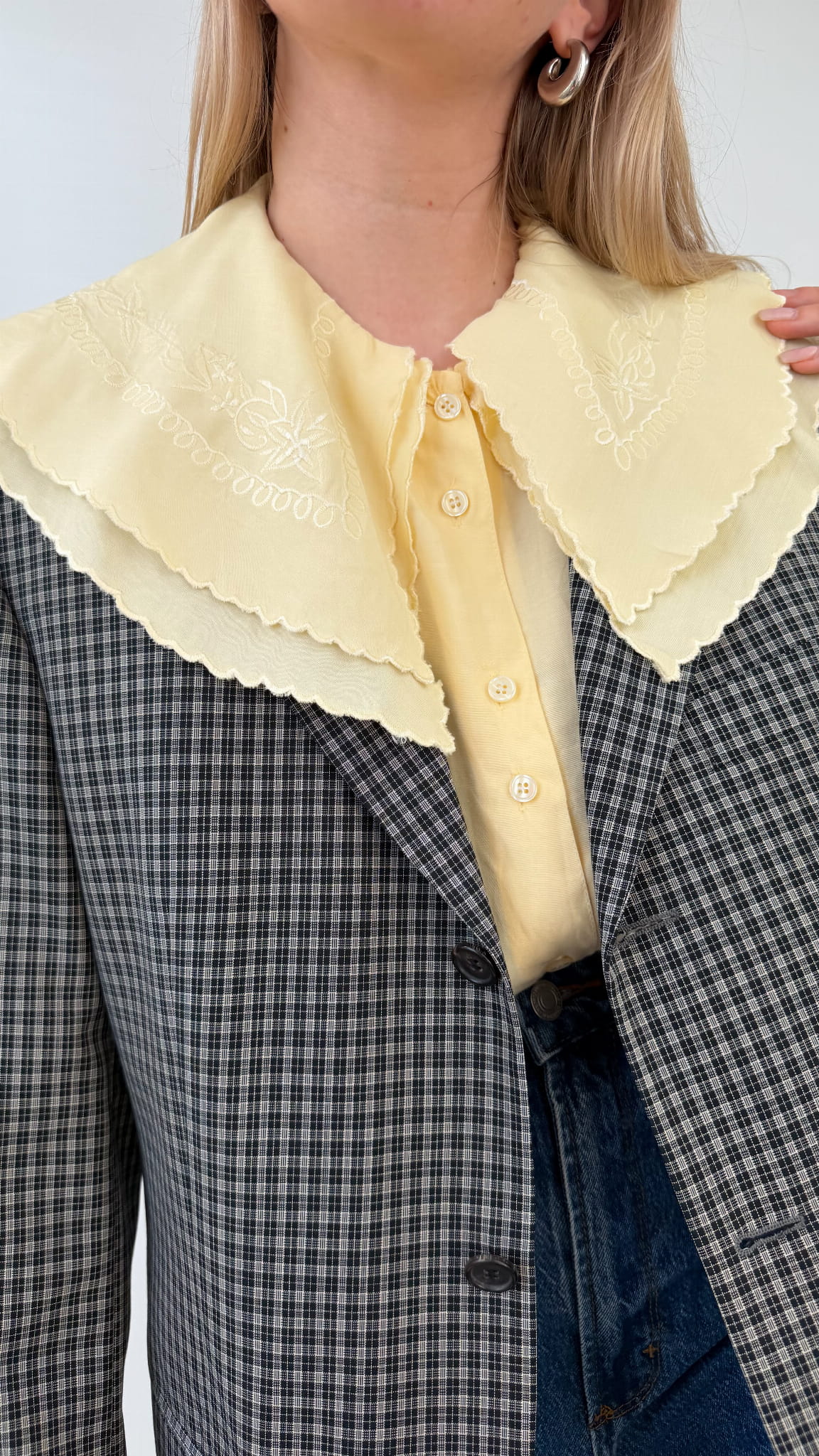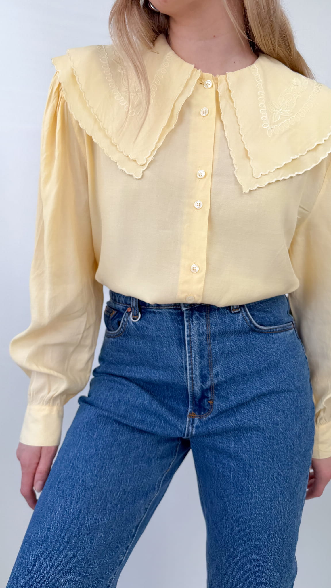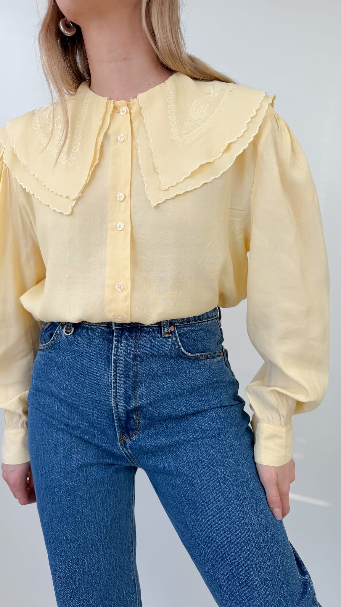 Koszula vintage z haftowanym kołnierzem