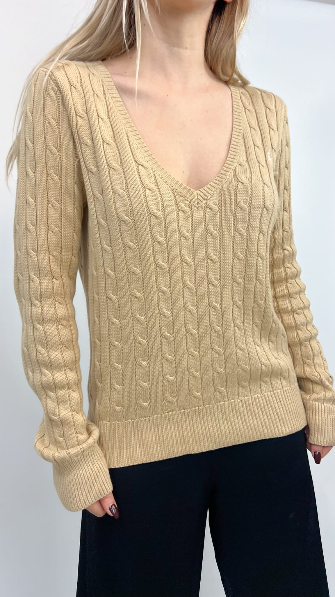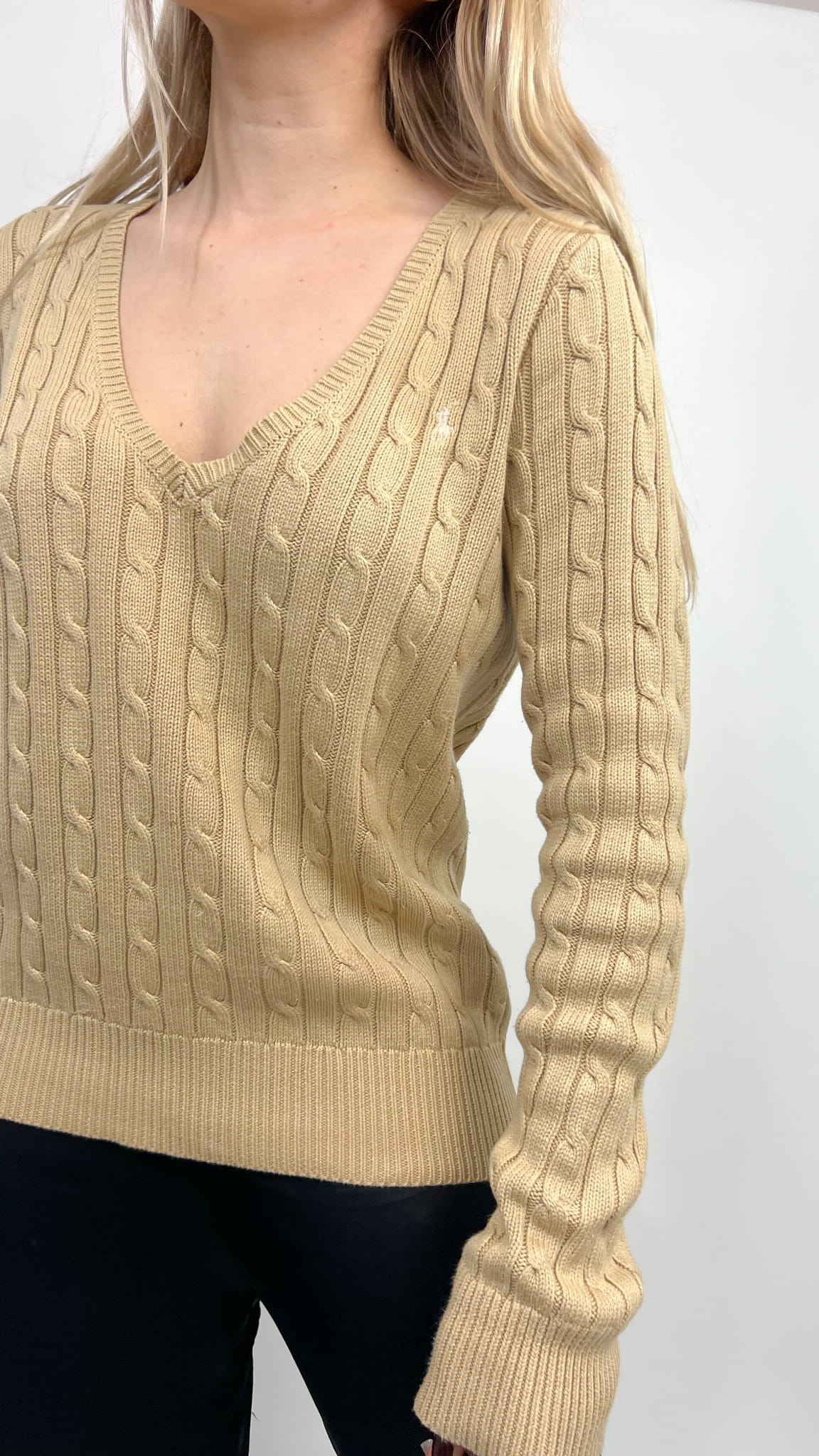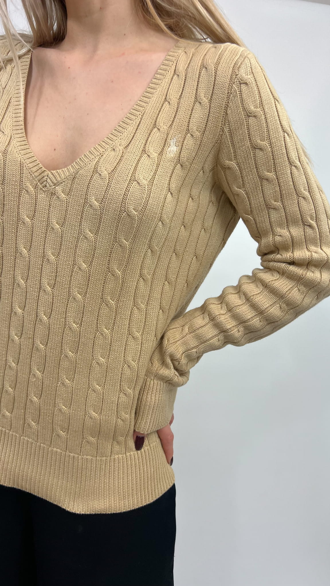 Ralph Lauren sweter beżowy warkocz bawełna