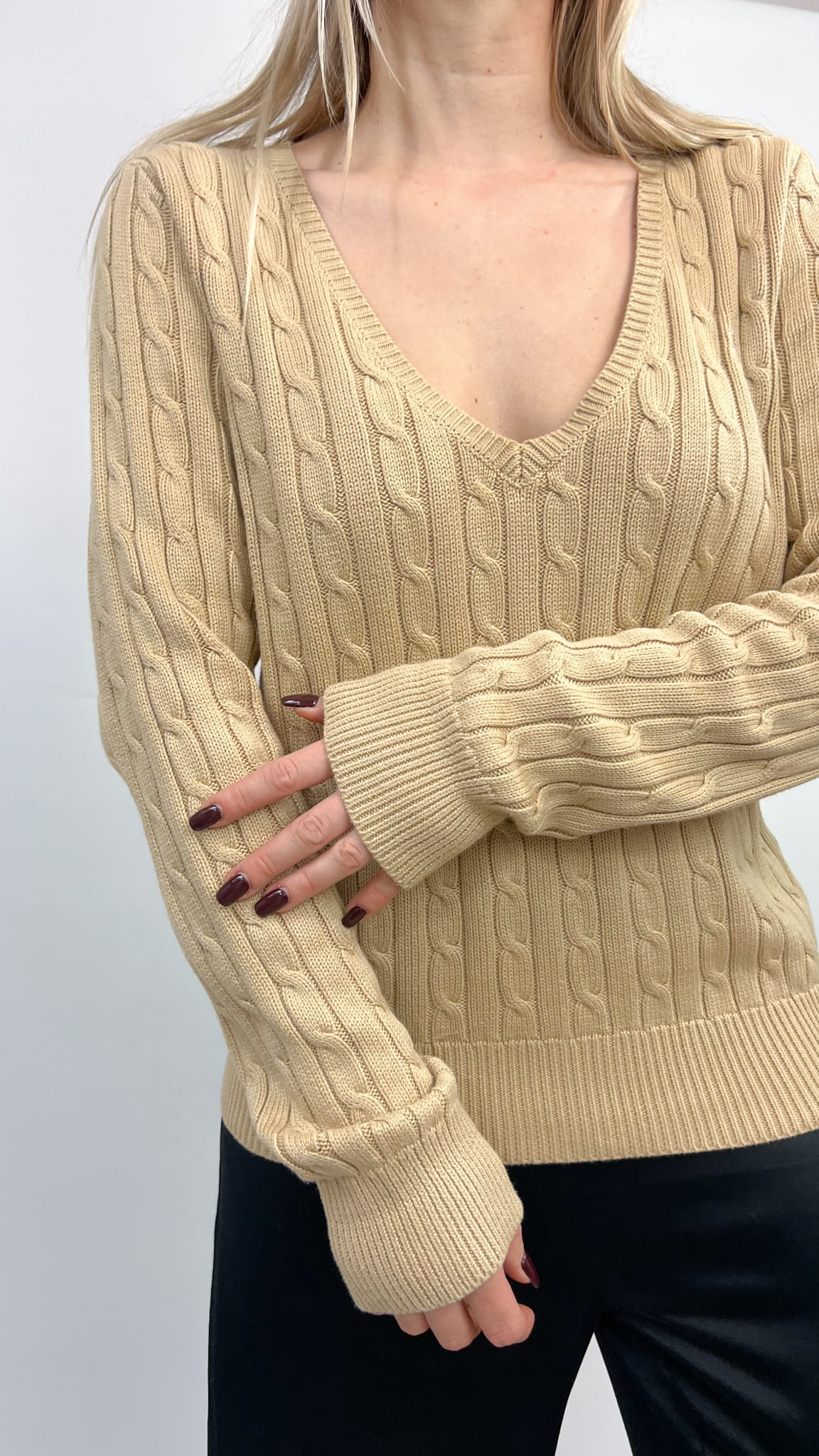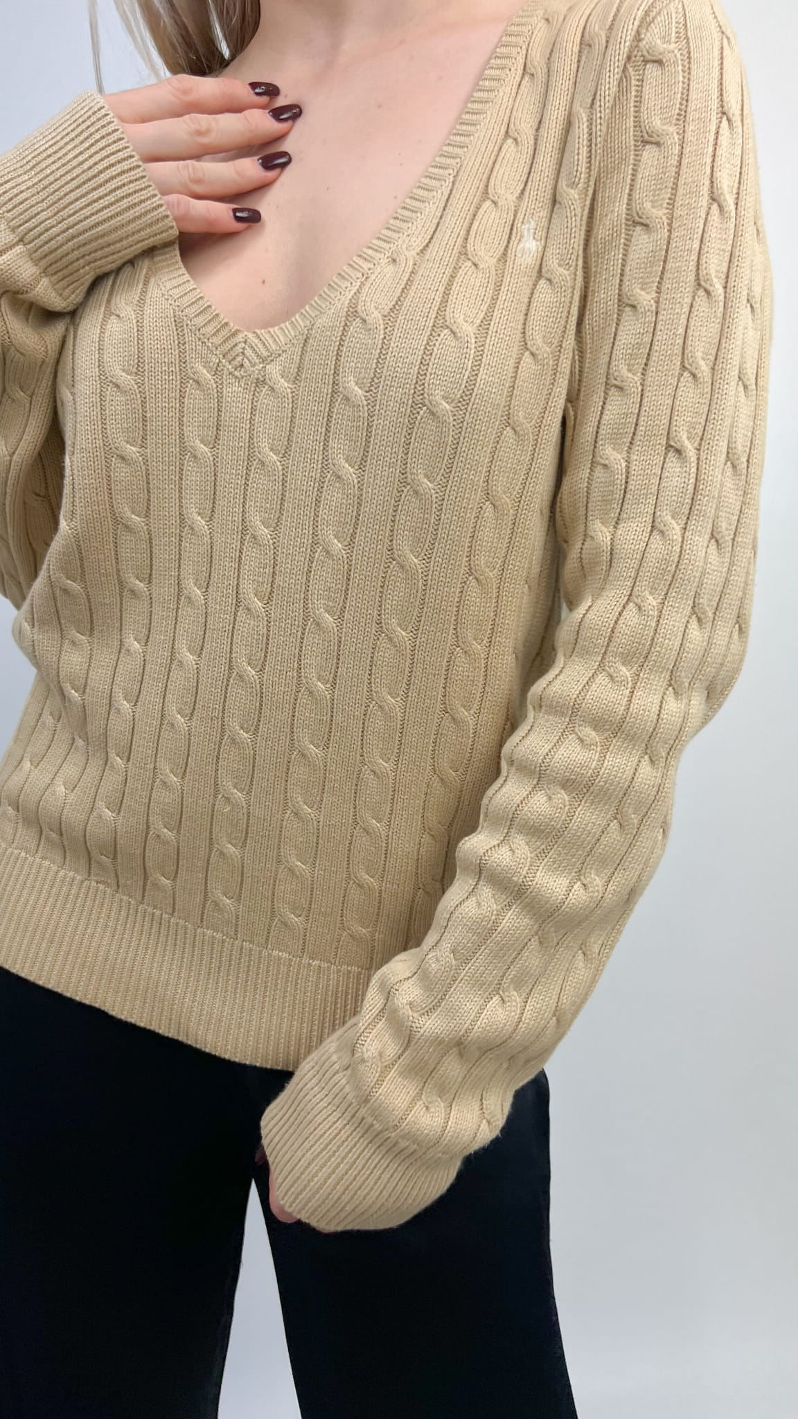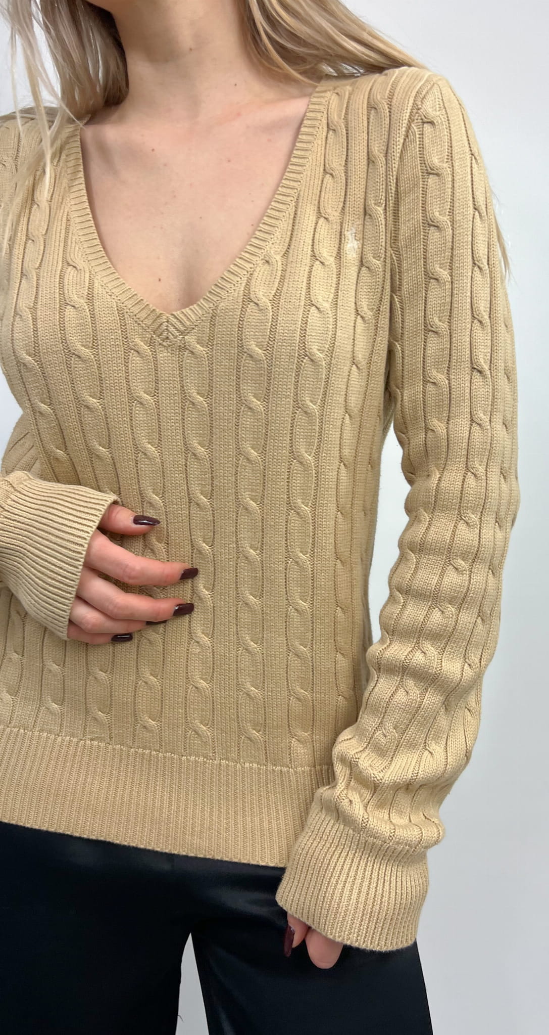 Ralph Lauren sweter beżowy warkocz bawełna