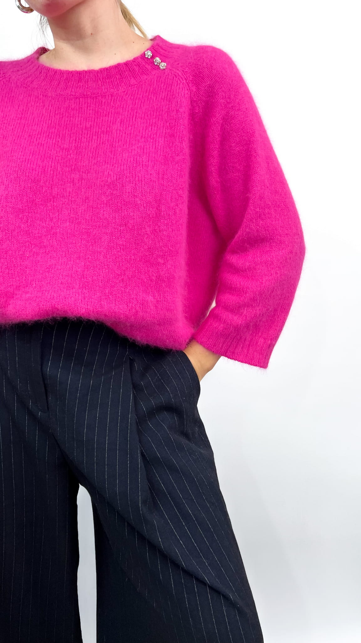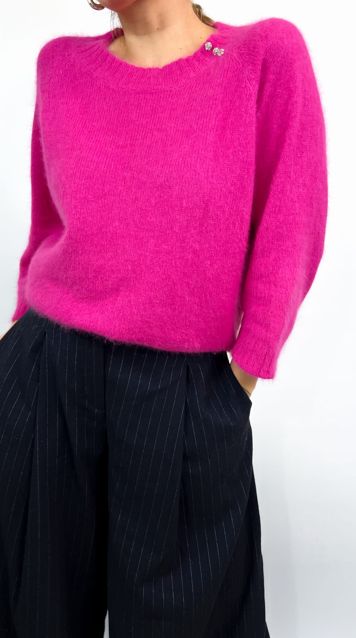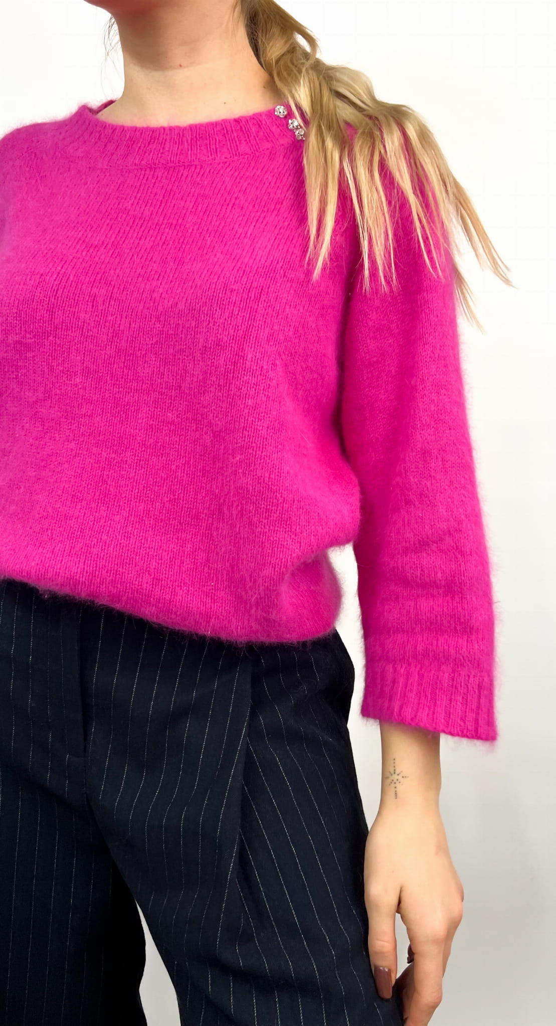 Un Jour Aillerus różowy sweter angora